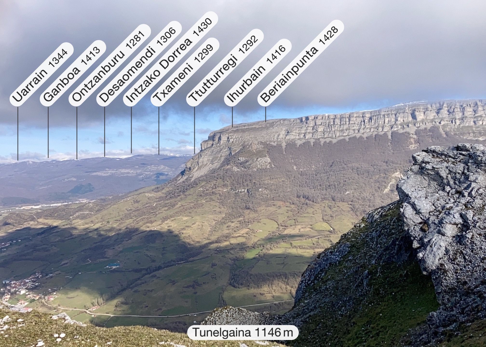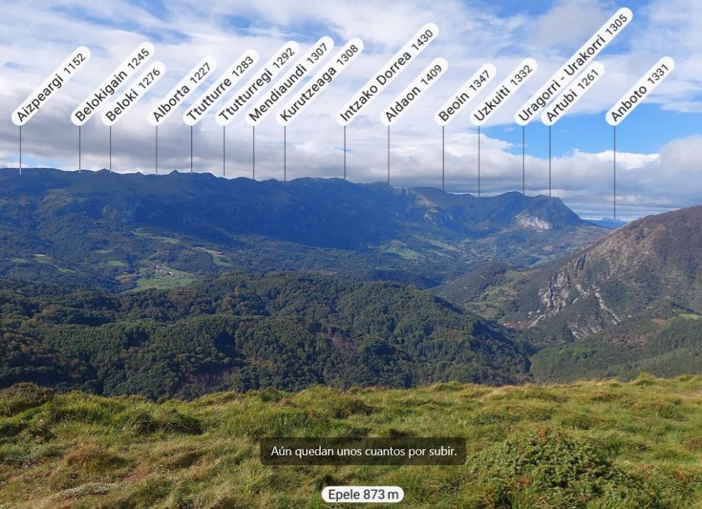 Entre las cimas más altas Baigura (1474) y Motxorro (1442) desde Azparren, Puttarri/Putxerri (1299), Elke (1294) y Pausaran(1267). ¿me dejo alguna importante?