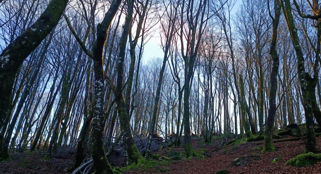 Y para terminar con buen pie el mes (y el otoño metereológico), el último miércoles tocaba paseo y «comida de hermandad»: Gartzaga (1291 m.) desde Almándoz (venta San Blas) y el premio final en la posada de Arraitz. Se ha notado los fuertes vientos de hace unos días y el aspecto del bosque es ya invernal