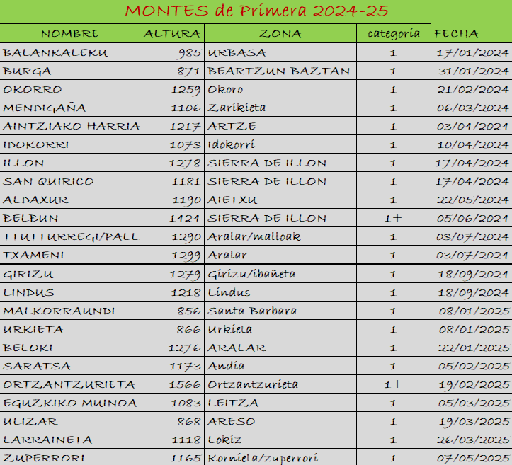 MendiStar, según el registro que lleva con esmero nuestro líder, hasta este mes de mayo habríamos hecho unos 125 de las 215 cimas de primera, ya van quedando pocos!!! …. Rutas 2025 Rutas 2024